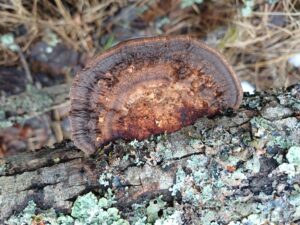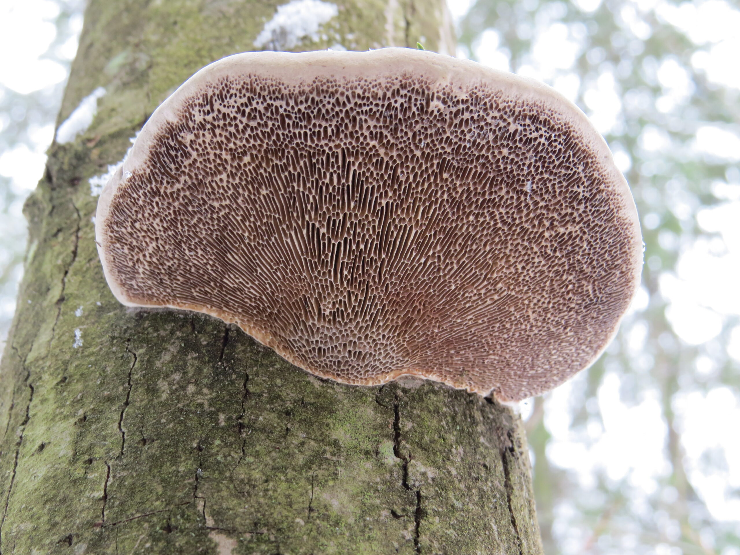 Tegeltickans undersida, hyneniet, med labyrintiska till runda porer. Långbjörken, Gunnilbo s:n, 10/3 2018. Foto: Tom Sävström